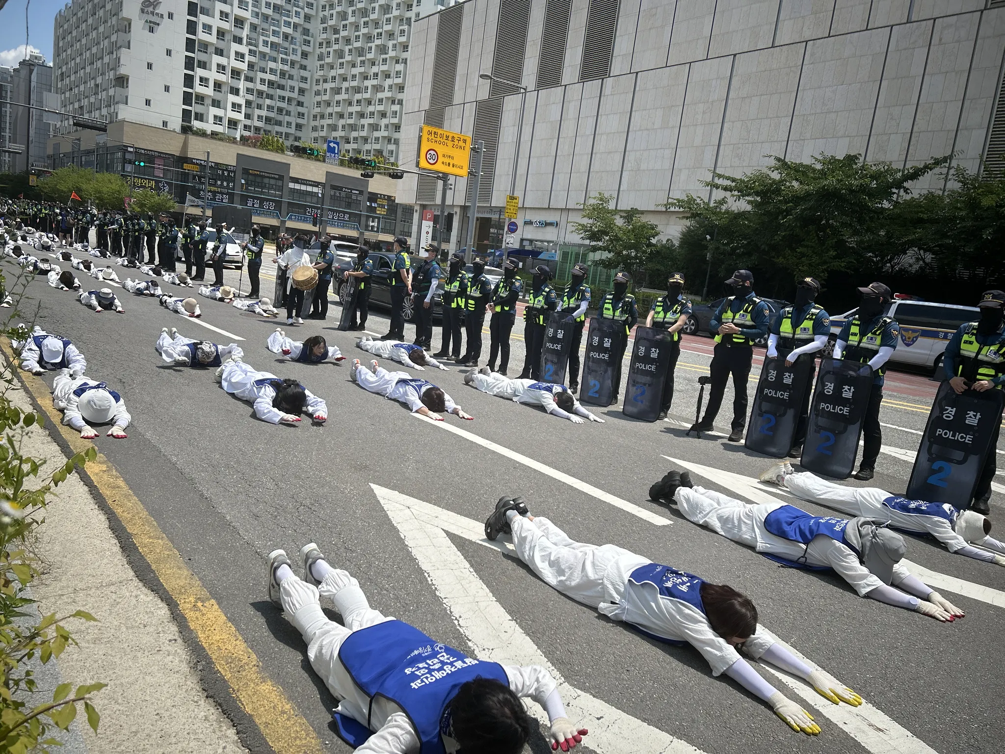 아무리 뜨거운 아스팔트에도 굴하지 않았던 부모연대의 오체투지, 기다리시라.