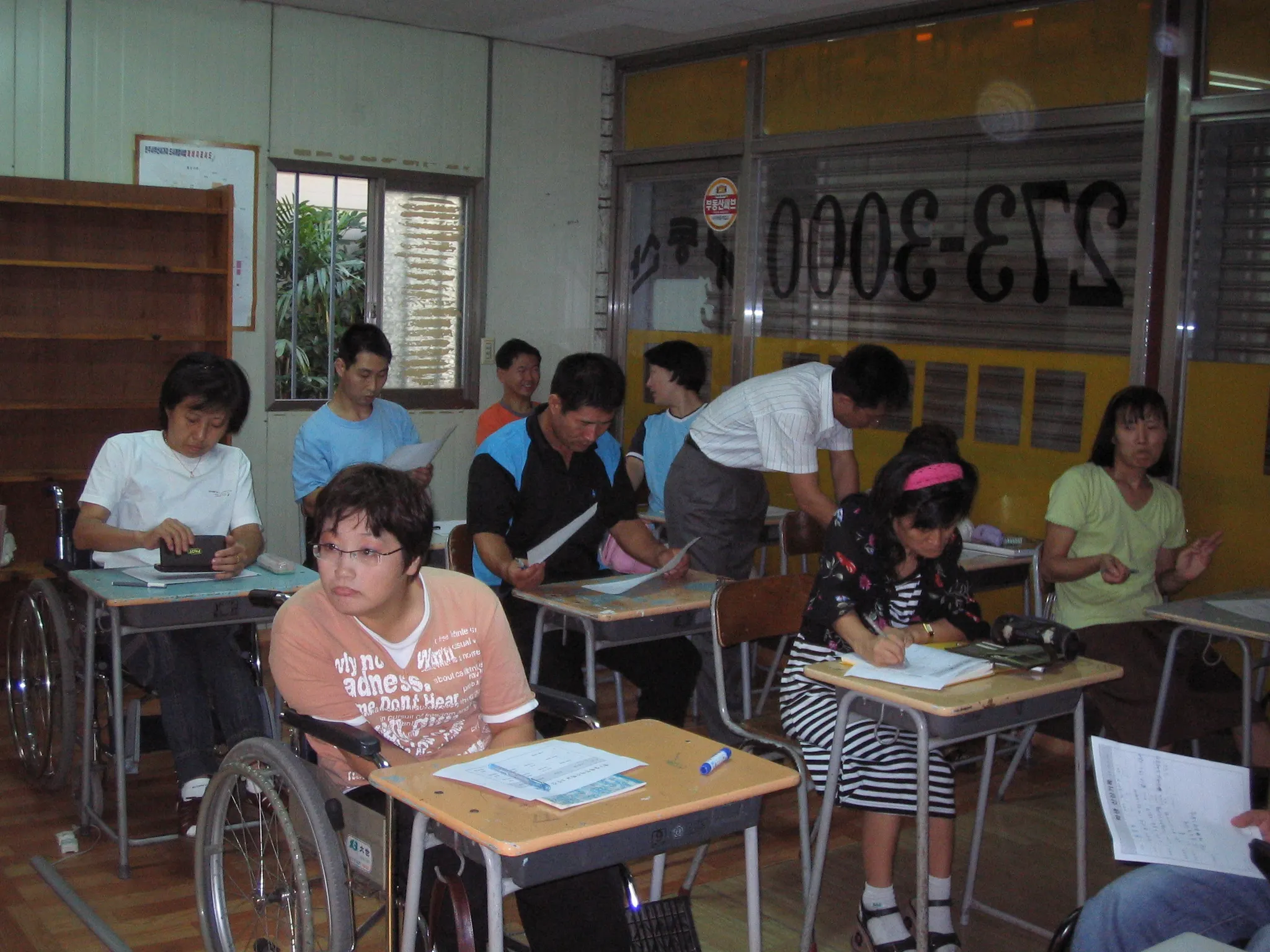 일단 컨테이너 사무실을 무상임대를 받아 초기 야학은 시작되었으며 배움의 기회를 갖지 못한 14명의 장애인학생과 7명의 자원봉사 교사에 의해 첫 수업이 시작되었다.