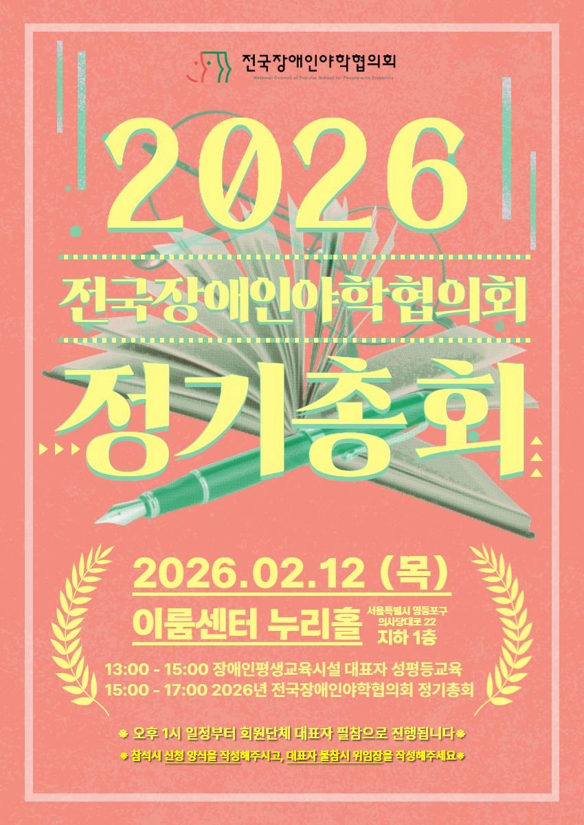 전국장애인야학협의회는 2/12(금) 이룸센터 누리홀에서 2026년 정기총회를 진행했습니다.