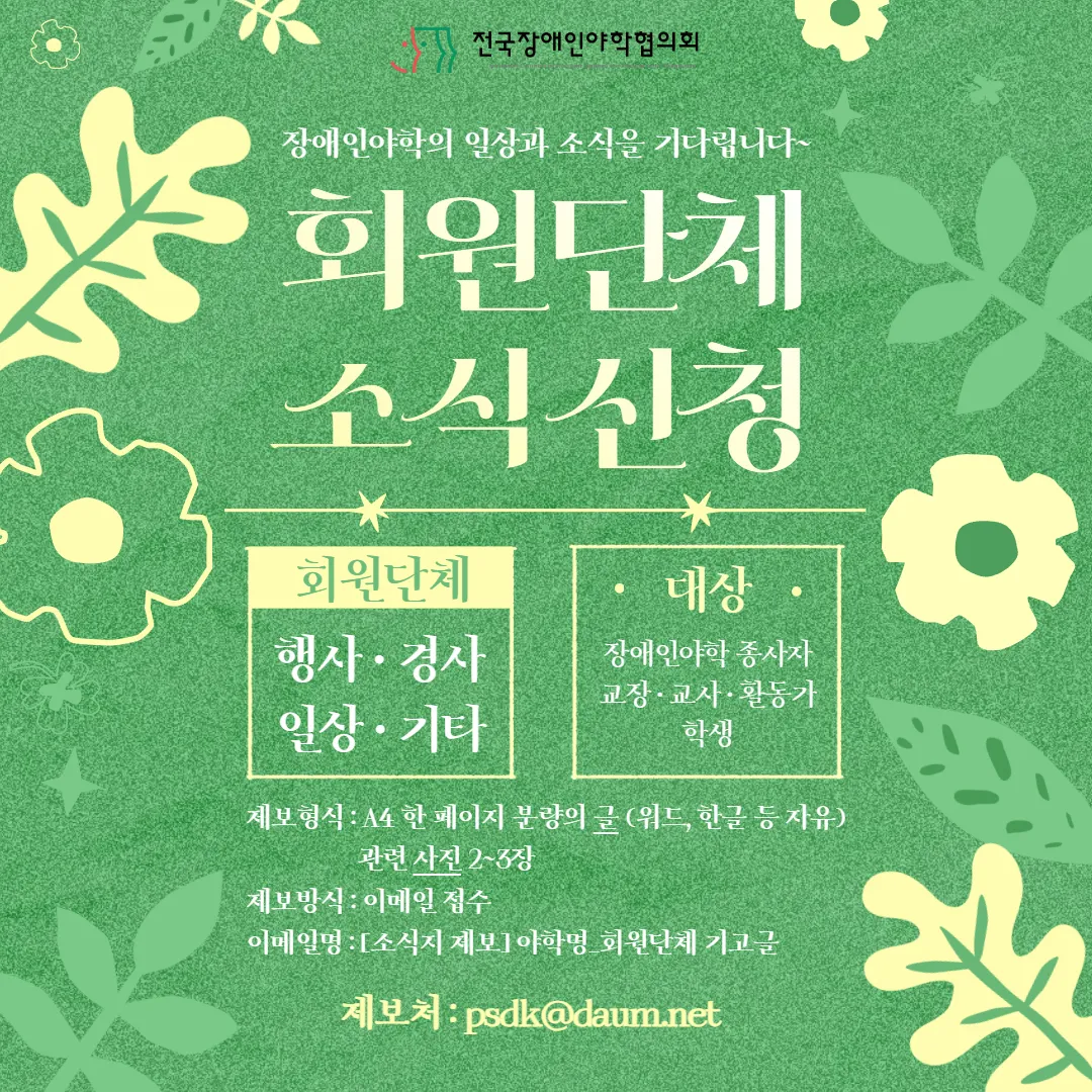 아래를 참고하여 나누고 싶은 장애인야학의 소식을 제보해주세요~